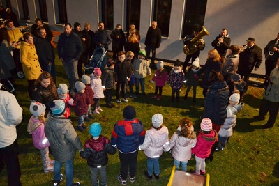 Wszystkich poczęstowano także rogalami świętomarcińskimi i ciepłymi napojami, dla najmłodszych przygotowano zabawy i gry oraz słodycze. Wszystko odbywało się przy biesiadnej muzyce orkiestry dętej pod batutą Helmuta Woszka.