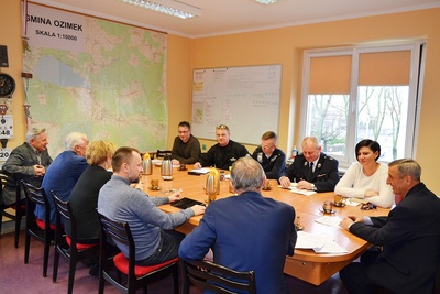Spotkanie poświęcone ocenie potencjalnych zagrożeń na terenie gminy Ozimek oraz doprecyzowaniu procedur zmierzających do przeciwdziałania i usuwania skutków klęsk żywiołowych i sytuacji kryzysowych odbyło się 1 grudnia w Gminnym Centrum Zarządzania Kryzysowego.