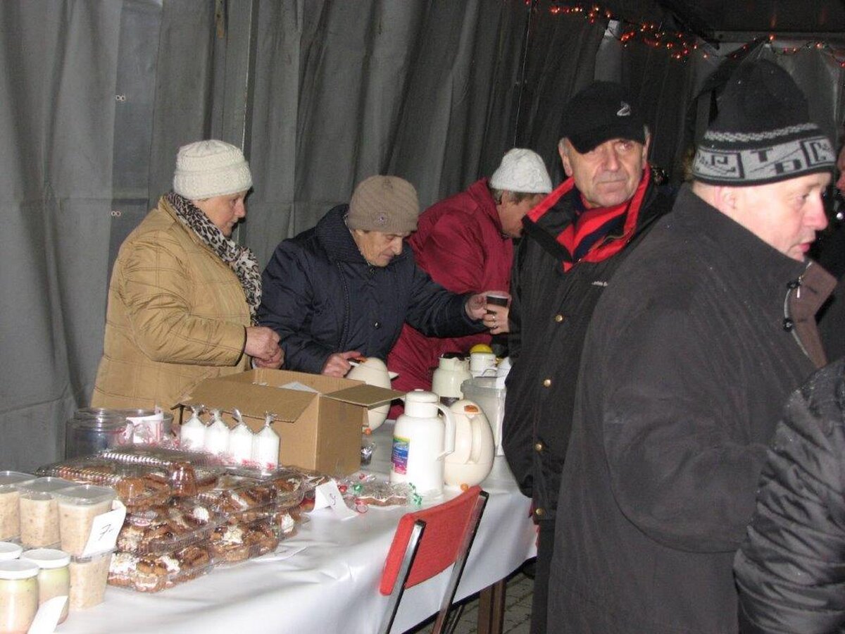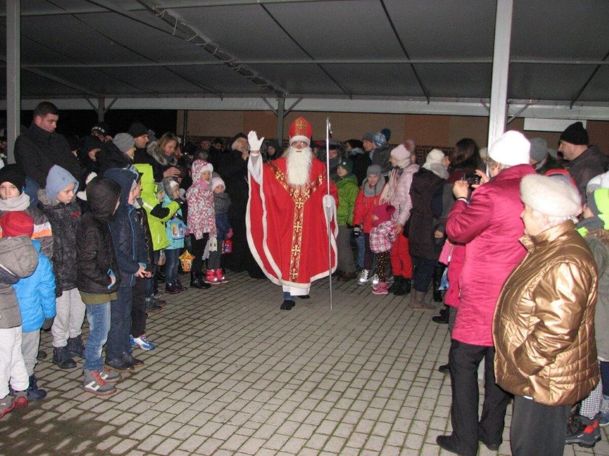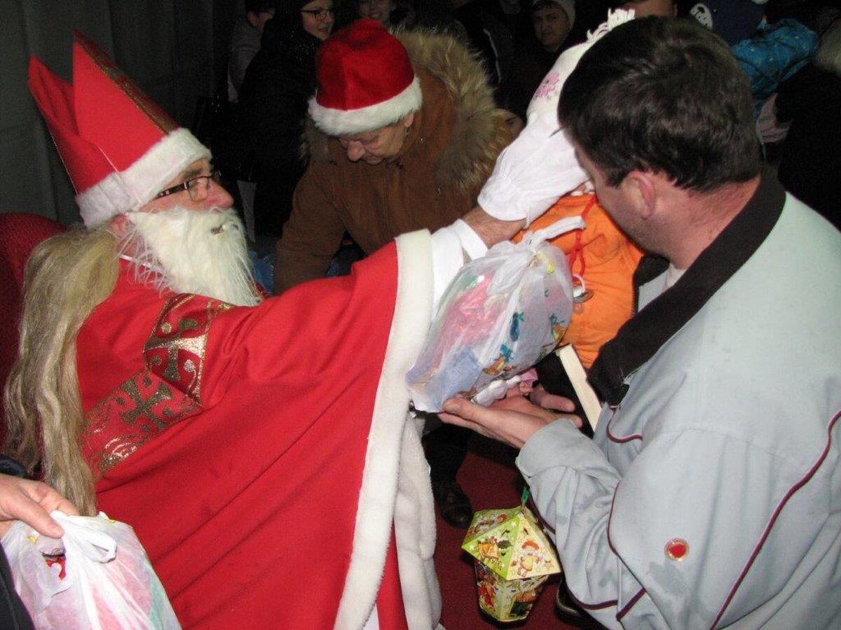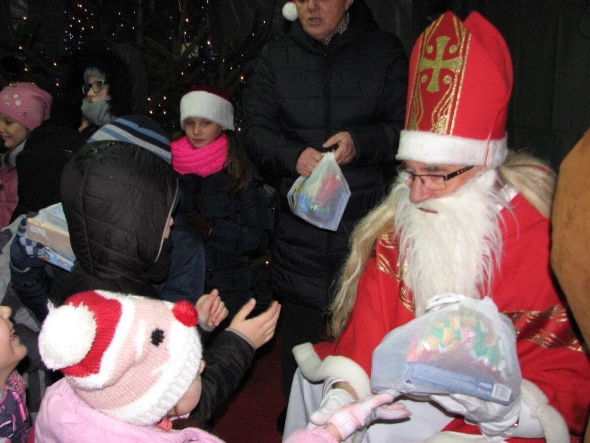 Przyprowadził je proboszcz parafii p.w. św. Mikołaja ks. prałat Marcin Ogiolda, a na miejscu czekały już elfy, czyli panie z parafialnego zespołu Caritas, będącego organizatorem tej corocznej uroczystości. Do rozdania przygotowano blisko 200 paczek ze słodyczami, więc Mikołaj miał ręce pełne roboty, obdarowując najpierw maluchy, później te nieco większe, a na koniec największe dzieci. Zmarznięci mogli się ogrzać przy ognisku, napić gorącej herbaty (dzieci) lub grzanego wina (dorośli). Powodzeniem cieszyły się także kiełbaski z grilla oraz oferowane na świątecznym kiermaszu domowe wyroby. Sprzedawano też wigilijne świece Caritas oraz zbierano datki na prowadzenie charytatywnej działalności wśród potrzebujących opieki i wsparcia parafian.