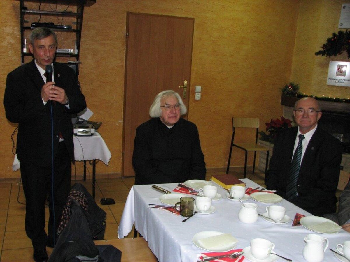 Przybyłych seniorów i zaproszonych gości powitała przewodnicząca Caritas Bernadetta Golomb. Po wspólnej modlitwie i pobłogosławieniu opłatków przez proboszcza ks. prałata Marcina Ogioldę, przystąpiono do wzajemnego składania życzeń świąteczno-noworocznych. Życzenia wszystkim seniorom oraz mieszkańcom Szczedrzyka złożył również burmistrz Ozimka Jan Labus. Po wigilijnej wieczerzy wspólnie śpiewano kolędy, które na dwa głosy intonowali ks. Marcin Ogiolda i Marcin Wilczek. Organizację spotkania wsparł finansowo Ośrodek Integracji i Pomocy Społecznej w Ozimku.