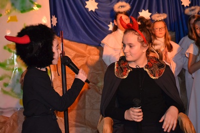 By umilić wieczór zaprezentowano jasełka w wykonaniu dzieci z SP 2. Spektakl cieszył się gromkimi brawami publiczności, którą zaproszono do wspólnego śpiewania kolęd.