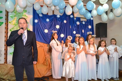 Po występach artystycznych burmistrz Jan Labus złożył wszystkim życzenia świąteczno-noworoczne.