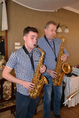 Podczas spotkania przygrywał duet muzyczny Tomasz i Kamil, którzy przygrywali na saksofonach i wprowadzili całą salę w świąteczny nastrój.