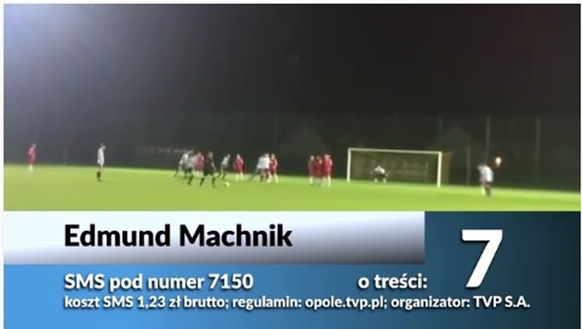 Wybierz najpiękniejszego gola Opolszczyzny 2017. Głosowanie trwa do 1 lutego. Głosujemy przez SMS pod numer 7150. Koszt: 1.23 zł za SMS. Regulamin oraz inne informacje zamieszono na stronie www.opole.tvp.pl. Organizatorem konkursu jest TVP S.A.