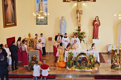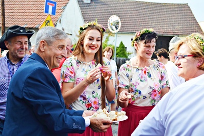 Następnie ks. Jan Bejnar pobłogosławił bochen chleba, po czym starostowie dożynek Julita i Waldemar Widera wręczyli go naszym włodarzom, by podzielili go wśród wszystkich zgromadzonych – jako symbol, aby nigdy nikomu go nie zbrakło. Po części oficjalnej zaproszono wszystkich na kołacz śląski oraz drobny poczęstunek, a wieczorem na uczestników czekała zabawa taneczne z DJ Biglo.