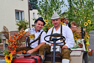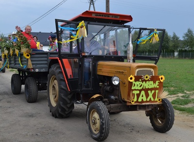 O godzinie 14:00 zebrał się barwny korowód, który przejechał ulicami wsi. Wśród licznych wozów był m.in. trabant, dożynkowe taxi, budowlańcy ze Schodni i Bawarczycy. Mimo przelotnych opadów deszczu mieszkańcy witali przebierańców przy swoich posesjach.