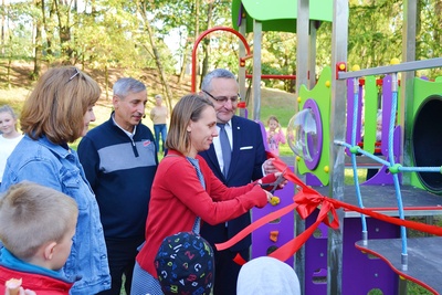 Szczególnie cieszy, że już pierwszego dnia piękny i kolorowy nowy plac zabaw był intensywnie oblężony przez najmłodszych obywateli naszej gminy.