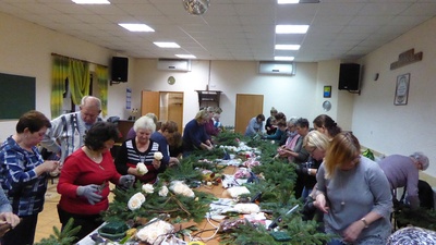 23 października w kole DFK Szczedrzyk i Pustków zorganizowano warsztaty robienia stroików z okazji zbliżającego się święta zmarłych. Większość uczestników stanowiły panie – młodsze i starsze, a przytrafiło się także kilku panów, których zadaniem było przygotowanie gałązek świerku i tui.