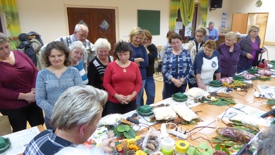 Po oficjalnym przywitaniu, przewodniczący Klaus Leschik oddał głos Teresie Machnik-Spyra – florystce, która poprowadziła spotkanie. Wytłumaczyła na wstępie jak obsługiwać poszczególne narzędzia oraz z jakich produktów można korzystać. Każda z uczestniczek mogła zrealizować własną wizję kompozycji.