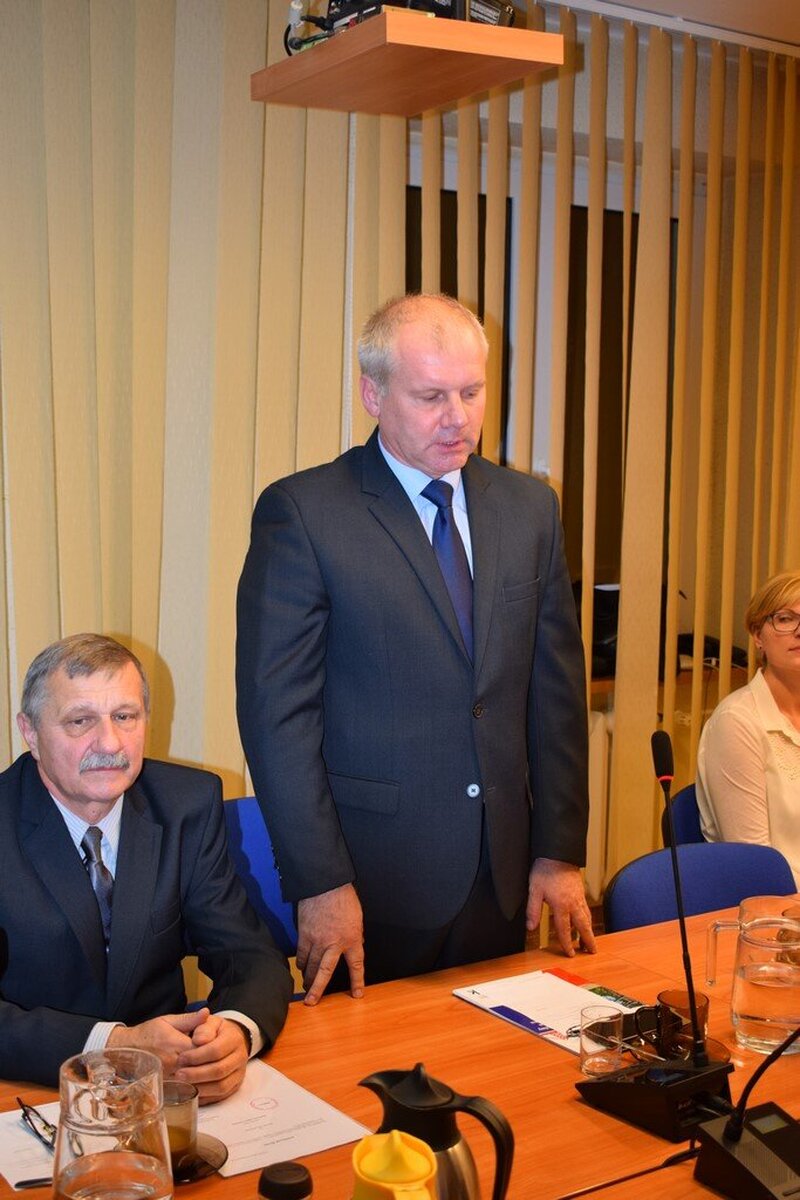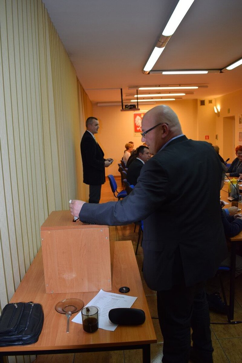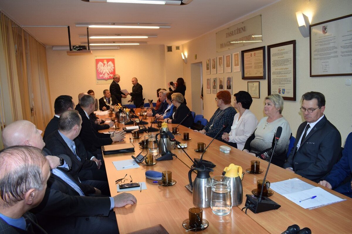 Podczas pierwszej sesji nowej Rady Miejskiej radni oraz burmistrz Jan Labus złożyli ślubowania. Ponadto w tajnych głosowaniach dokonali wyboru przewodniczącej Rady Miejskiej - została nią Aldona Koczur oraz wiceprzewodniczącego RM - został nim Marek Elis. Oboje nie mieli kontrkandydatów i wybrani zostali zdecydowaną większością głosów. Początkowo - do momentu wyboru kierownictwa RM - obrady prowadził radny senior - Jan Polaczek.