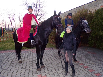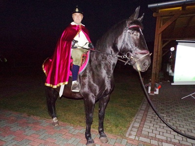 Korowód ruszył spod szkoły, przeszedł ulicami wsi i dotarł na plac przy świetlicy wiejskiej. Tam odbyło się tradycyjne przedstawienie kluczowej scenki z życia św. Marcina, w którego rolę wcielił się Antoni Gryc. Patron podzielił się częścią swojego płaszczu z potrzebującym – to okaz wielkiego miłosierdzia do bliźniego.