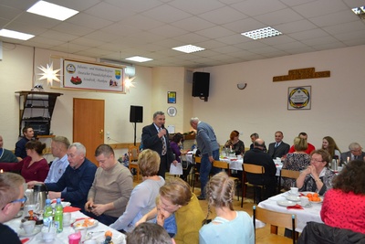 Wszystkich zebranych przywitał przewodniczący Klaus Leschik, który nie krył radości z tak licznej frekwencji. Przywitał także obecnych gości m.in. burmistrza Jana Labusa i sołtysa Mirosława Wieszołka oraz radnego powiatowego Antoniego Gryca. Zaprosił także do wspólnego kolędowania w języku niemiecki.