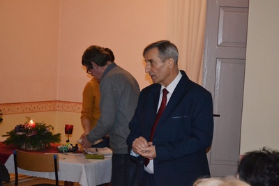 Ze świątecznymi życzeniami przybył także burmistrz Jan Labus, który życzył spokojnych i radosnych Świąt Bożego Narodzenia w gronie najbliższych.