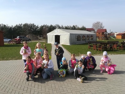 W dniu 30 marca 2019 r. Pani Sołtys wraz z Radą Sołecką wsi Antoniów zorganizowała dla dzieci warsztaty wielkanocne, które miały miejsce w Gospodarstwie Agroturystycznym GIPROL w Staniszczach Małych. Oprócz własnoręcznie wykonanych zajączków ze słomy, świec z wosku, pisanek wielkanocnych nasi najmłodsi brali udział w zabawach na wolnym powietrzu oraz poszukiwaniu "zajączka", a także w skupieniu wysłuchały opowieści o dawnych tradycjach i zwyczajach wielkanocnych. Pogoda i humory dopisały, kiełbaska smakowała, dzieci zadowolone i uśmiechnięte, co świadczy o świetnie spędzonym dniu, za co Paniom z Gospodarstwa Agroturystycznego bardzo dziękujemy, a Panu Burmistrzowi Gminy Ozimek jesteśmy ogromnie wdzięczni za sfinansowanie tych warsztatów.