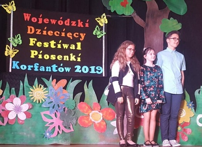 Radość duma, ogromne emocje towarzyszyły nam podczas występów konkursowych 25 kwietnia. W tym dniu urocza trójka naszych podopiecznych, przepięknie, zaprezentowała się podczas Wojewódzkiego Konkursu w Korfantowie. To była XXVIII edycja tego festiwalu z rekordową (80) ilością uczestników z całego województwa opolskiego, my tam zaprezentowaliśmy się po raz pierwszy. I to jak!