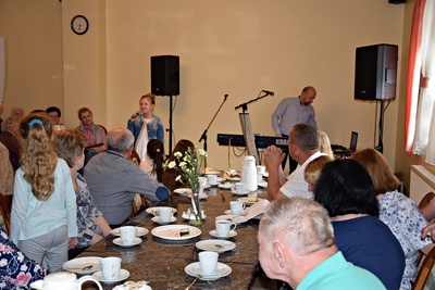 Na wstępie przewodniczący Jerzy Sobota przywitał wszystkich zgromadzonych, składając im jednocześnie życzenia z okazji ich święta. Zaś o muzyczny akcent imprezy zadbali lokalny muzyk Tomasz Glensk oraz młoda wokalistka z DFK Antoniów Vanessa Gonsior. Doświadczony muzyk przygrywał znane melodie na skrzypcach, a utalentowana Vanessa śpiewała niemieckie szlagiery.