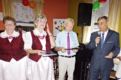 Z okazji tak doniosłego jubileuszu najserdeczniejsze gratulacje złożył im burmistrz Ozimka Jan Labus, który podziękował za wieloletnią twórczość i poświęcenie, za miłość do folkloru, za propagowanie naszej kultury. Korzystając z okazji złożył także życzenia wielu dalszych, wspaniałych sukcesów, wszelkiej pomyślności, a także kolejnych udanych występów. Do życzeń przyłączyli się wszyscy zgromadzeni.
