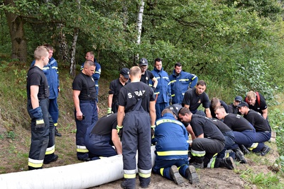 W sobotę 7 września ochotnicy ćwiczyli na Czarnym Dole w Krasiejowie, gdzie m.in. używali pompy wysokiej wydajności będącej na stanie OSP w Antoniowie.