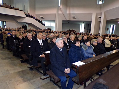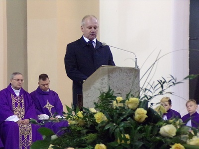 Proboszcz Demarczyk podczas kazania mówił o zmarłym burmistrzu – „podjął się misji służby drugiemu człowiekowi i naszej społeczności (…) nasza tu obecność to świadectwo, że rzeczywiście był dobrym włodarzem, był dla nas, dla społeczności bardzo dostępny” – zaznaczył.