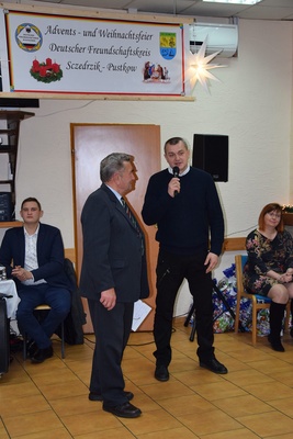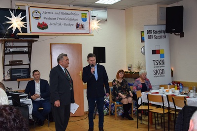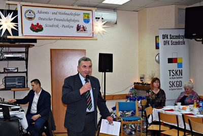 Na wstępie Klaus Leschik przewodniczący DFK Szczedrzyk i Pustków przywitał zebranych oraz zaproszonych gości posła Ryszarda Gallę, radnych powiatowych Antoniego Gryca i Krzysztofa Koźlika, sołtysa wsi i radnego miejskiego Mirosława Wieszołka, szefową Caritas Szczedrzyk Bernadettę Golomb i przewodniczącego Stowarzyszenia Przyjaciół Szczedrzyka Kazimierza Udolfa.