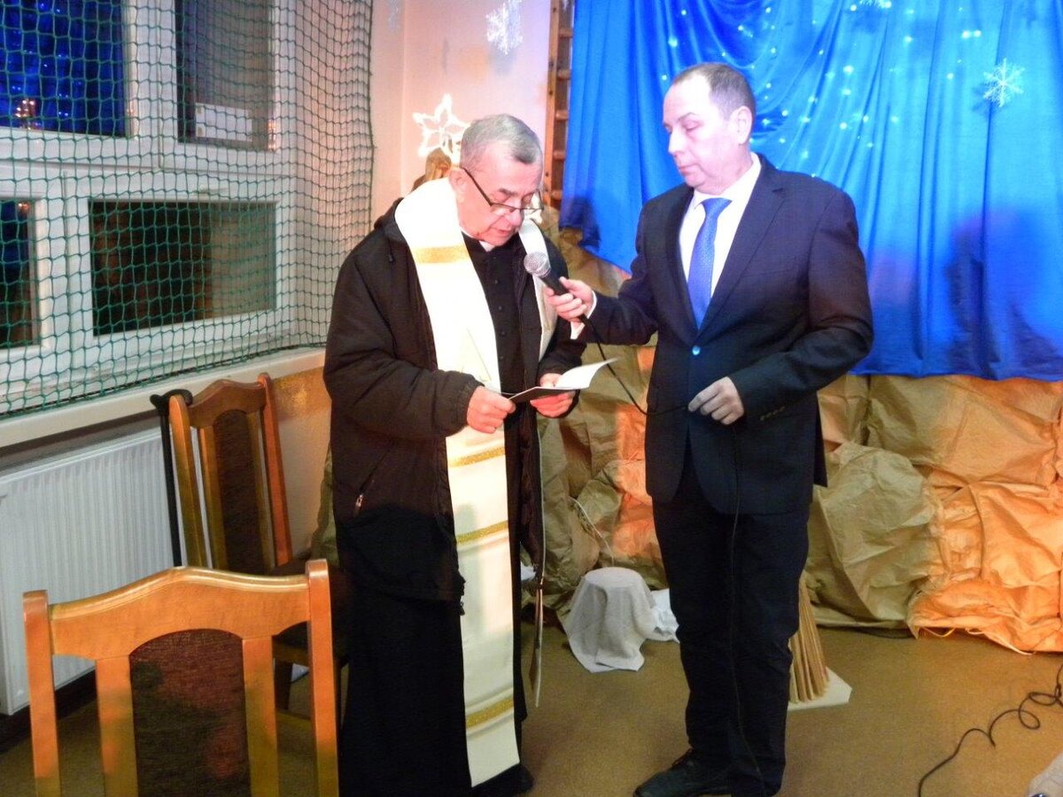 Świąteczno-noworoczne życzenia złożyli obecnym: sołtys Leszek Jaremko, pełniący funkcję burmistrza Zbigniew Kowalczyk, przewodnicząca Rady Miejskiej Ozimka Aldona Koczur i dyrektor SP nr 2 Wiesław Miś, a uczniowie zaprezentowali swoim gościom piękne i nagrodzone gorącymi oklaskami przedstawienie jasełkowe. Fragment Ewangelii o narodzinach Dzieciątka Jezus odczytał proboszcz parafii w Schodni ks. Jan Bejnar, błogosławiąc również opłatki, którymi dzielono się przy wzajemnym składaniu życzeń. Później była wigilijna kolacja i wspólne śpiewanie kolęd, które wprowadziło wszystkich w świąteczny, radosny nastrój.