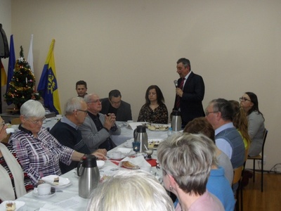 Spotkanie rozpoczęła Jolanta Podkowa - wiceprzewodnicząca koła DFK witając mieszkańców i przybyłych gości. Następnie słowami modlitwy wspomnieliśmy zmarłych w zeszłym roku członków koła DFK Krasiejów. Kolejno głos zabrał szef gminnych kół TSKN Marcin Konietzko składając wszystkim noworoczne życzenia. W świąteczną atmosferę wprowadziły zebranych dzieci przedszkolne przedstawiając swój radosny program artystyczny. W dalszej części imprezy wystąpiła Joanna Wicher z własnym repertuarem kolędowo-biesiadnym. Skutecznie rozbawiała towarzystwo i zachęcała wszystkich do wspólnego kolędowania, które trwało ponad dwie godziny. W międzyczasie można było częstować się kołaczem i kawą, a później kiełbaskami i kanapkami. Poczęstunek dla dorosłych i paczki dla dzieci przedszkolnych przygotowały panie z koła DFK (U. Bok, I. Feliks, S. Szubert, E. Wer). Podczas spotkania głos zabrali także Krzysztof Koźlik, Sołtys wsi oraz Jan Polaczek. Na zakończenie przewodniczący koła DFK w Krasiejowie i główny organizator imprezy - Piotr Szubert podziękował pani Joannie Wicher za wspaniały występ, pani Gerlich za artystyczne przygotowanie dzieci, a zebranym za liczną obecność. Oprawę muzyczną zapewnił pan Bogdan Koprek, za co zarząd DFK składa serdeczne podziękowania.