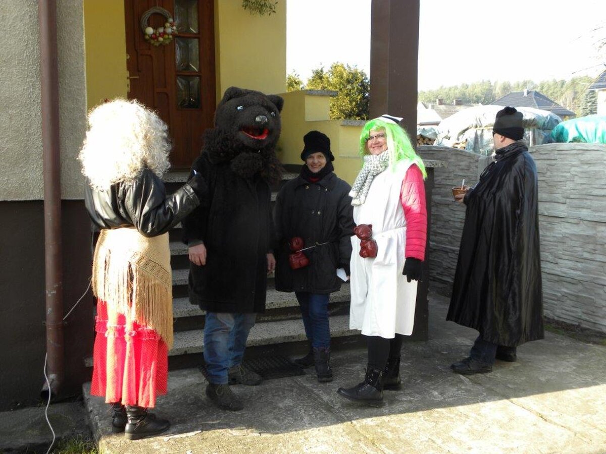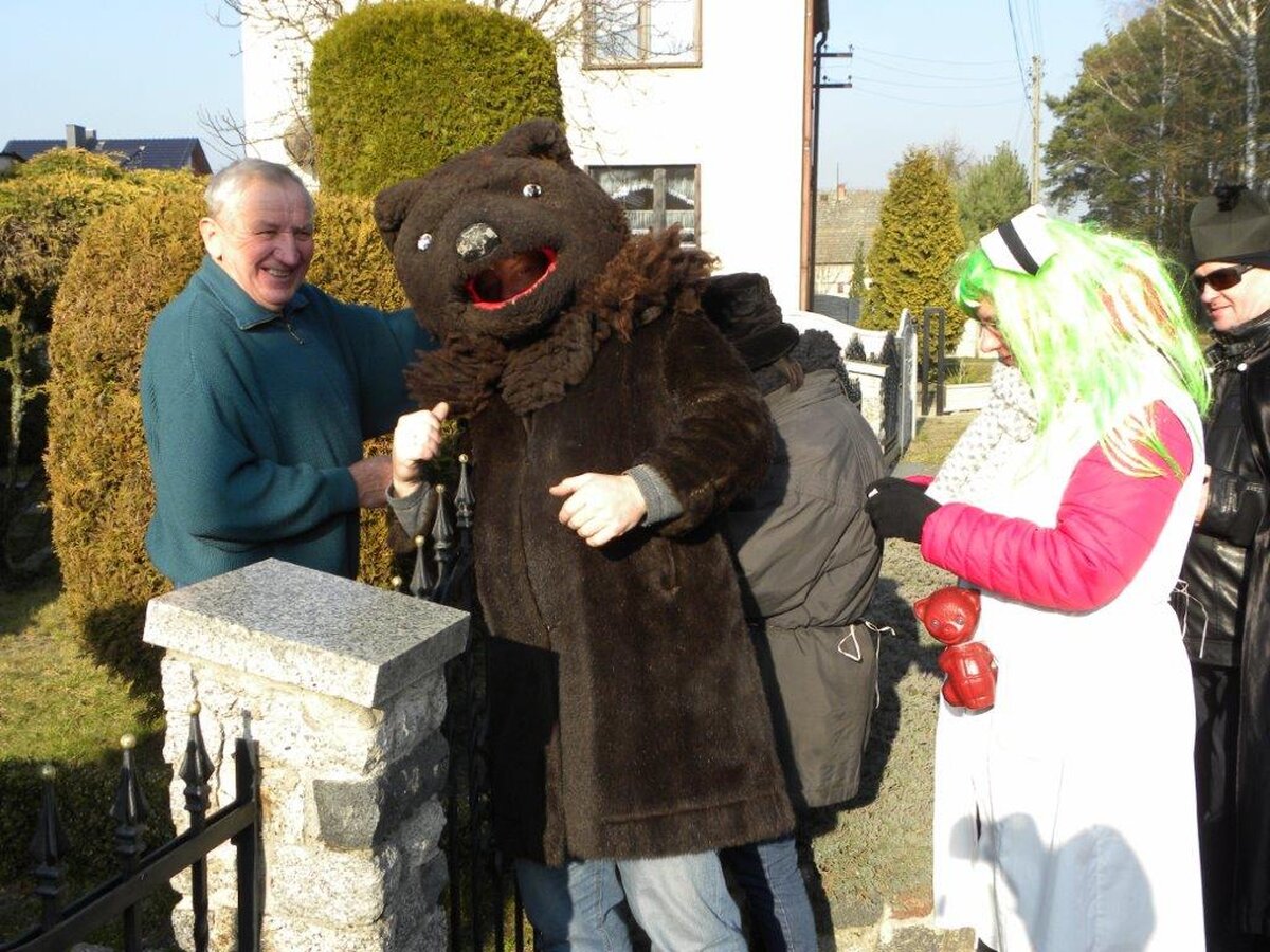 Od rana do późnego popołudnia niedźwiedź w towarzystwie wesołej gromady przebierańców przeszedł przez całą wieś, odwiedzając te gospodarstwa, których właściciele wyrazili chęć przyjęcia korowodu. Domownikom składano życzenia, a niedźwiedź tańczył z gospodyniami, zapewniając im w ten sposób szczęście i pomyślność na cały rok. „Policjanci” wręczali natomiast „berowe” mandaty kierowcom przejeżdżającym tego dnia przez centrum wsi. Zebrane podczas wodzenia niedźwiedzia datki i darowizny zostaną przeznaczone na realizację zadań statutowych sołectwa. Mieszkańcom, którzy przyjęli „bera”, a także ugościli przebierańców poczęstunkiem, sołtys i Rada Sołecka składają serdeczne podziękowania.
