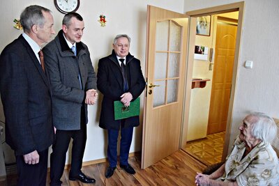14 lutego br. oficjalna delegacja składająca się z Doradcy Wojewody Opolskiego Jacka Szymańskiego, Pełniącego Funkcję Burmistrza Ozimka Zbigniewa Kowalczyka oraz burmistrza elekta Mirosława Wieszołka odwiedziła Panią Helenę Fedyk.