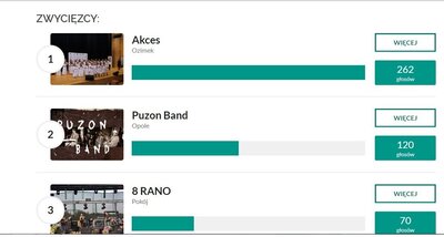 Głównie to dzięki Wam, naszym wspaniałomyślnym fanom i sympatykom możemy świętować ten mały sukces. Te 262 głosy oddane na nasz zespół umocniło nas na pozycji lidera w województwie. To bardzo miło z Waszej strony i bardzo dziękujemy. Teraz przed nami wojewódzki finał akcji, gdzie także będziemy potrzebować Waszego wsparcia. Szczegóły już w krótce, śledźcie naszą stronę oraz fanpaga na FB i trzymajcie kciuki.