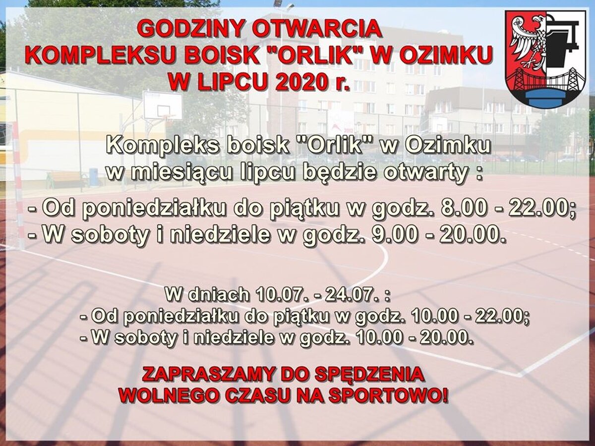 GODZINY OTWARCIA KOMPLEKSU BOISK ORLIK W OZIMKU W LIPCU 2020 R.