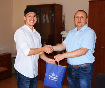 10 lipca Waldemar Sobota odwiedził Urząd Gminy i Miasta w Ozimku, gdzie spotkał się z Zastępcą Burmistrza Ozimka Panem Andrzejem Brzeziną, który prywatnie jest wielkim kibicem piłki nożnej i od dawna kibicuje naszemu zawodnikowi.