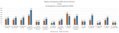 Informuję, iż frekwencja wyborcza podczas drugiej tury wyborów prezydenckich w Gminie Ozimek była wyższa niż w pierwszej turze i wyniosła 53,77 %.