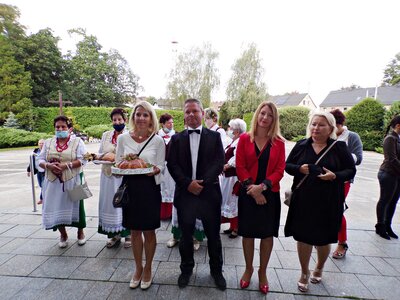 W uroczystościach uczestniczyli także włodarze gminy Burmistrz Ozimka Mirosław Wieszołek i Zastępca Burmistrza Ozimka Andrzej Brzezina, jak również przedstawiciele Rady Sołeckiej Wsi Antoniów i zespołów ludowych Opolskie Dziołchy z Antoniowa i Heidi z Ozimka.
