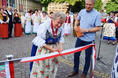 Oficjalnego przecięcia wstęgi dokonali Burmistrz Ozimka Mirosław Wieszołek, Dyrektor Muzeum Wsi Opolskiej Jarosław Gałęza oraz Renata Janik, która ozdobiła tradycyjnym opolskim wzorem kroszonkę.
