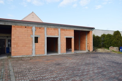 W ramach inwestycji wymurowano ściany nośne i działowe oraz wykonano dach z płyt warstwowych.