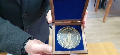 Uroczystość nadania śp. Bernardowi Materne tytułu "Zasłużony dla Krasiejowa"