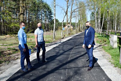 Dnia 10.05.2021 r. dokonano odbiorów końcowych na ul. Leśnej w Mnichusie oraz ul. Polnej w Chobiu, w którym uczestniczyli Burmistrz Ozimka Mirosław Wieszołek, Łukasz Mikoda właściciel głównego wykonawcy obu inwestycji - Protect Building z Lędzin oraz Sołtys Wsi Chobie Magdalena Panitz.
