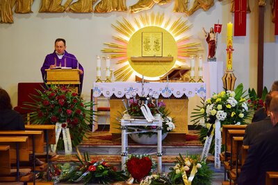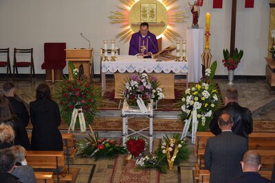Mszę żałobną odprawił proboszcz parafii pw. Podwyższenia Krzyża Świętego w Suchym Borze ks. Krzysztof Blaut, który podczas homilii szczególnie podziękował zmarłemu. Był nie tylko gorliwym katolikiem, ale również darczyńcą, który zawsze wspierał parafię.