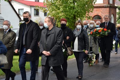 Następnie zgromadzeni przeszli na cmentarz w Suchym Borze, gdzie pożegnano zmarłego ze wszystkimi honorami. Głos zabrał także Andrzej Wolny – wieloletni Zastępca Burmistrza Ozimka, który bardzo blisko współpracował z Panem Sobczakiem. Wymienił jego liczne zasługi, które miały ogromne znaczenie dla Gminy Ozimek. Osiągając wiele sukcesów, przeprowadzając szereg przedsięwzięć i inwestycji, zawsze pozostawał dobrym i serdecznym człowiekiem, a przede wszystkim znakomitym szefem i przyjacielem.