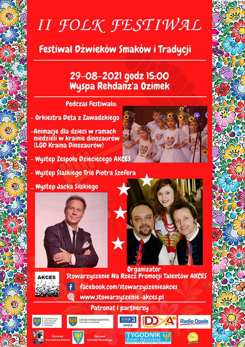 Serdecznie zapraszamy na II Folk Festiwal – Festiwal Dźwięków i Smaków, który odbędzie się 29 sierpnia 2021 r. o godz. 15:00 na Wyspie Rehdanza w Ozimku.