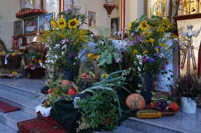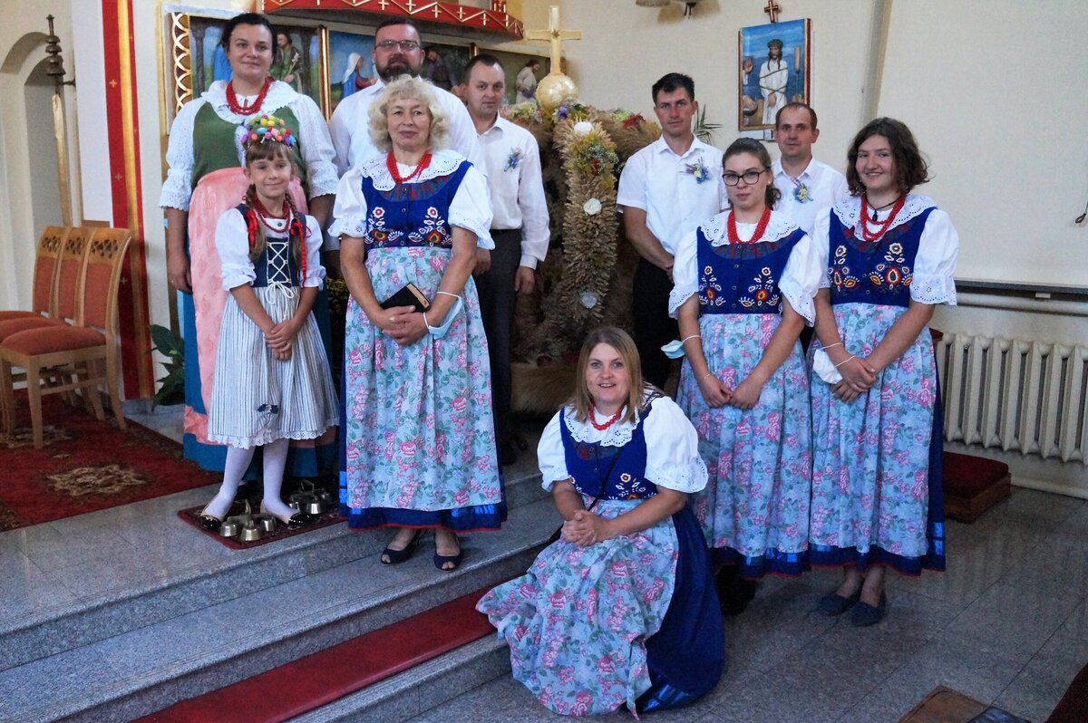 Mieszkańcy Grodźca, Chobia i Mnichusa świętowali tegoroczne plony podczas uroczystej Mszy św. dziękczynnej w, pięknie na tę okazję udekorowanym, kościele parafialnym. Gospodarze Dożynek przynieśli przed ołtarz chleb, aprzedstawiciele sołectw Chobie i Mnichus okazałe kosze i korony dożynkowe.