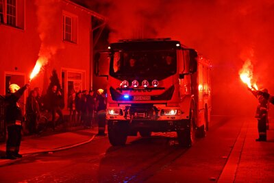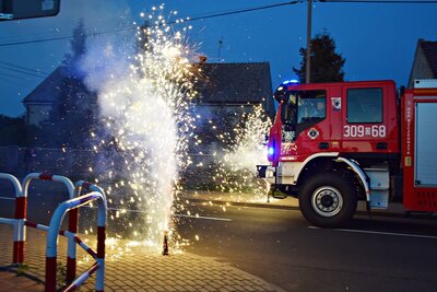 Samochód wjeżdżał do miejscowości na sygnałach w eskorcie obecnych dwóch pojazdów jednostki ze Szczedrzyka, bardzo efektownie przygotowane przywitanie – race, pirotechnika – uatrakcyjniło to wyjątkowe wydarzenie. Mieszkańcy witali nowy pojazd gromkimi brawami, a na ręce prezesa Andrzeja Jakubca składano liczne gratulacje.
