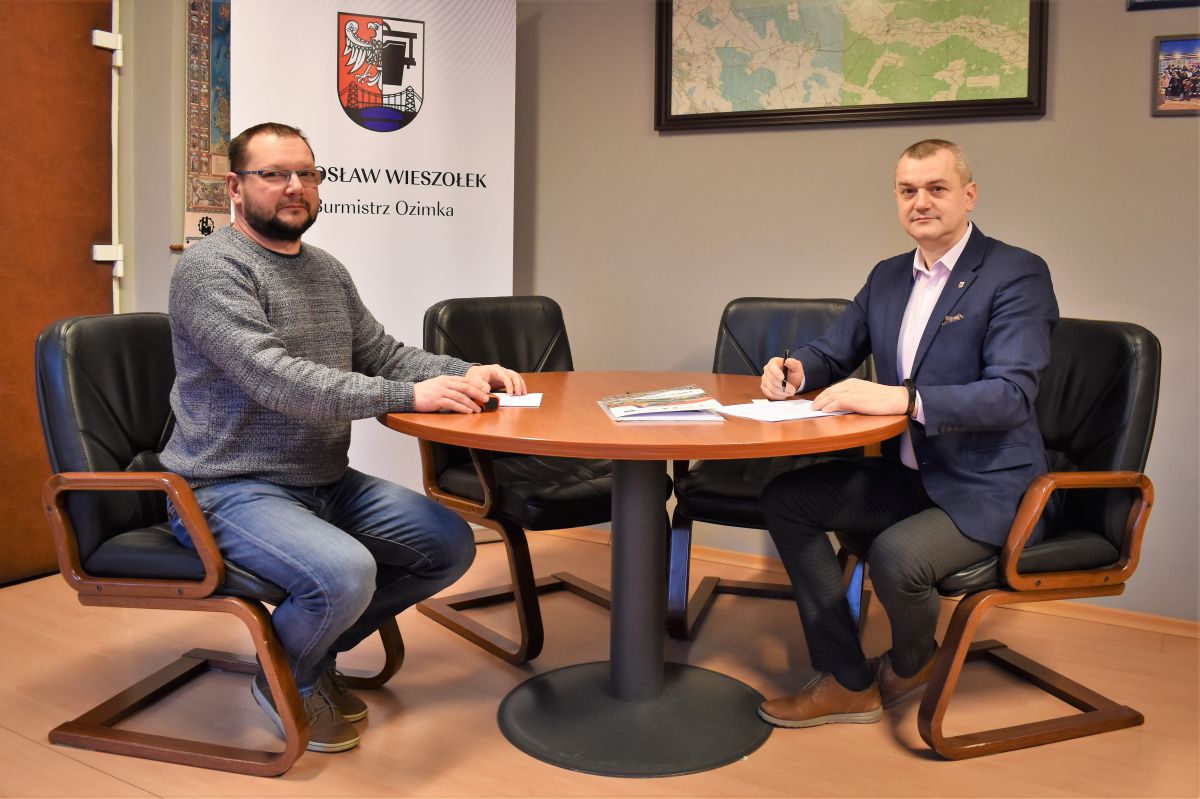 1 lutego 2022 roku Burmistrz Ozimka Mirosław Wieszołek wraz z Prezesm Zarządu firmy Vianko Sp. z o. o. Tomaszem Trzaskowskim podpisali umowę na zadanie pn. „Przebudowa dróg gminnych: Cz. Nr 3 ul. Polna w m. Krzyżowa Dolina”.