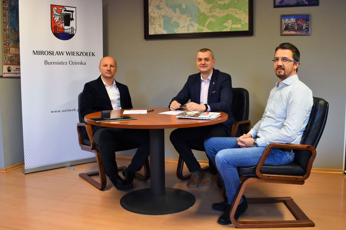 1 lutego 2022 roku Burmistrz Ozimka Mirosław Wieszołek wraz z Członkiem Zarządu firmy Adamietz Sp. z o. o. Marcinem Leppichem podpisali umowę na zadanie pn. „Przebudowa dróg gminnych: Cz. Nr 2 ul. Jakuba w m. Dylaki”.