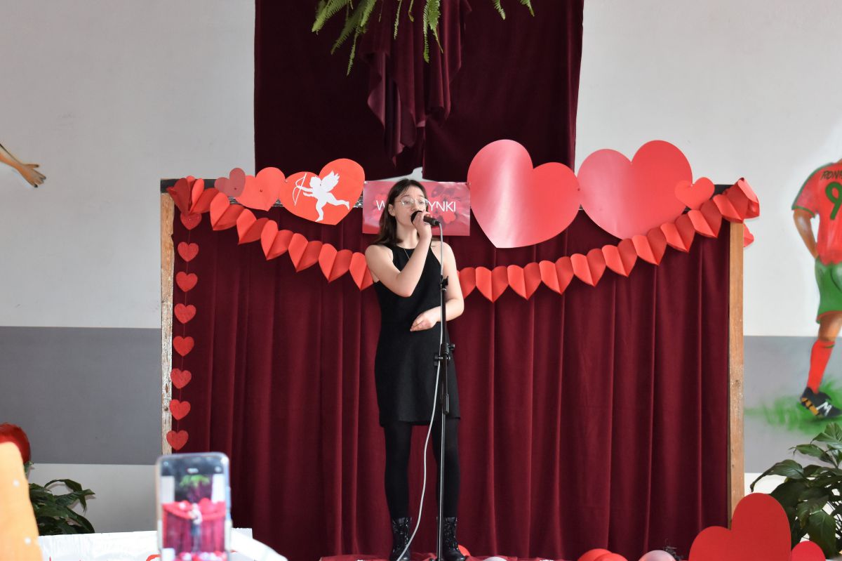 Uczennice zaprezentowały utwory baśniowe, bajkowe, współczesne, ponadczasowe aby wyrazić przez śpiew swoje emocje, wzruszyć, cieszyć i wprawić wszystkich słuchaczy w romantyczny nastrój w pięknej walentynkowej scenerii.