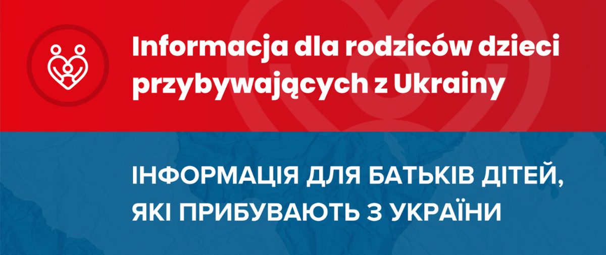 Informacja dla rodziców dzieci przybywających z Ukrainy / ІНФОРМАЦІЯ ДЛЯ БАТЬКІВ ДІТЕЙ, ЯКІ ПРИБУВАЮТЬ З УКРАЇНИ