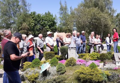 Następnego dnia rano uczestnicy wycieczki mieli okazję do udziału we mszy św. w kościele Nawiedzenia NMP. Po smacznym śniadaniu i wykwaterowaniu udaliśmy się autobusem do Huty Szkła „Julia” w Piechowicach. Podczas zwiedzania zakładu towarzyszył nam przewodnik, który zaznajamiał nas z etapami produkcji i kierunkami zbytu. Zajrzeliśmy też do firmowego sklepu z kolekcją form szkła kryształowego. Było naprawdę w czym wybierać, a ceny potwierdzały, że wykonanie kryształowych okazów wymaga kunsztu i precyzji szlifowania. Około południa udaliśmy się do Parku Miniatur w Kowarach, który oferuje zwiedzającym kopie wielu zabytkowych i znanych obiektów Dolnego Śląska. Wyjątkiem był nasz opolski zamek z Mosznej, który przyciągnął oczywiście naszą uwagę. Skąpani promieniami słońca chodziliśmy wraz z przewodniczką ścieżkami wśród ozdobnych krzewów i kwiatów. Co niektórym udało się nawet zajrzeć do pracowni architektonicznej, w której miniatury obiektów powstają. Żmudna to, ale przynosząca wiele satysfakcji praca, szczególnie, gdy efekty wzbudzają zachwyt turystów. Ostatnimi punktami wycieczki były pałac w Karpnikach i zespół pałacowo-ogrodowy w Bukowcu. Ten ostatni to dawna siedziba Friedricha i Johanne Friederike von Reden, o czym informuje napis na tympanonie herbaciarni oraz ich drewniane rzeźby ustawione pod rozłożystym dębem. Dobra w Bukowcu, które hrabia von Reden zakupił w 1785 r. zamienił w przynoszące dochody gospodarstwo. W latach 1790-1880 przeprowadził modernizację dworu, wzniósł szereg budowli folwarcznych oraz założył park, którego sława wyszła poza granice Śląska. Po wojnie obiekt popadał w ruinę, a obecnie jest rewaloryzowany. Po obiedzie pełni wrażeń udaliśmy się w drogę powrotną do Krasiejowa. Dziękujemy panu Wernerowi Klimkowi - wiceprezesowi SMK za wspaniałą organizację wyjazdu i poświęcony czas, aby wszystko było zapięte na przysłowiowy ostatni guzik, UGiM Ozimek za dofinansowanie, panu Krzysztofowi Koźlikowi za pomoc w zorganizowaniu przejazdu oraz panu kierowcy Adrianowi za bezpieczny przewóz wszystkich uczestników. Wycieczka przebiegała pod honorowym patronatem Marszałka Województwa Opolskiego Andrzeja Buły, co jest dla nas dużym wyróżnieniem. Reprezentowaliśmy Opolszczyznę godnie. Do zobaczenia na kolejnym wyjeździe!