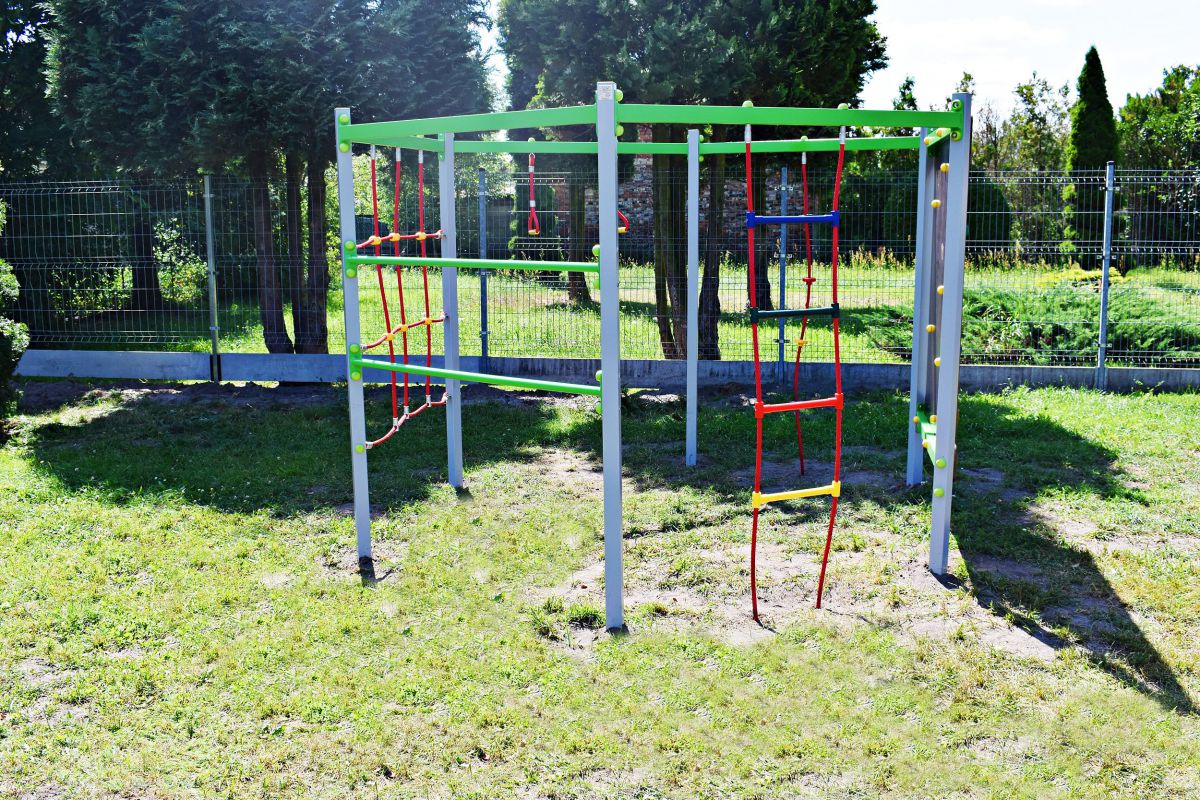 Dokonano przeniesienia części istniejącego ogrodzenia oraz dokupiono dodatkowe elementy, dzięki czemu powiększono teren istniejącego placu zabaw. Ponadto zakupiono 3 nowe urządzenia – huśtawkę podwójną, huśtawkę bocianie gniazdo i sześciokąt wielofunkcyjny.
