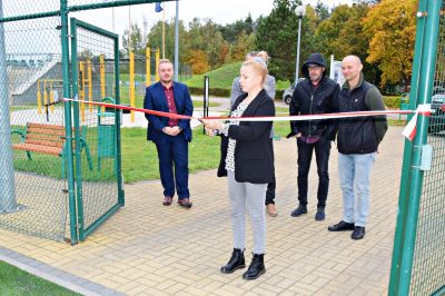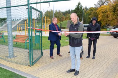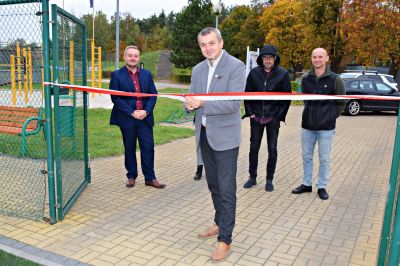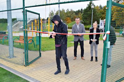 Uroczystego przecięcia wstęgi dokonali m.in. Burmistrz Ozimka Mirosław Wieszołek, Dyrektor MOSiR w Ozimku Arkadiusz Banik oraz Michał Nowok - przedstawiciel głównego wykonawcy TOP SPORT z Bielsko Białej.