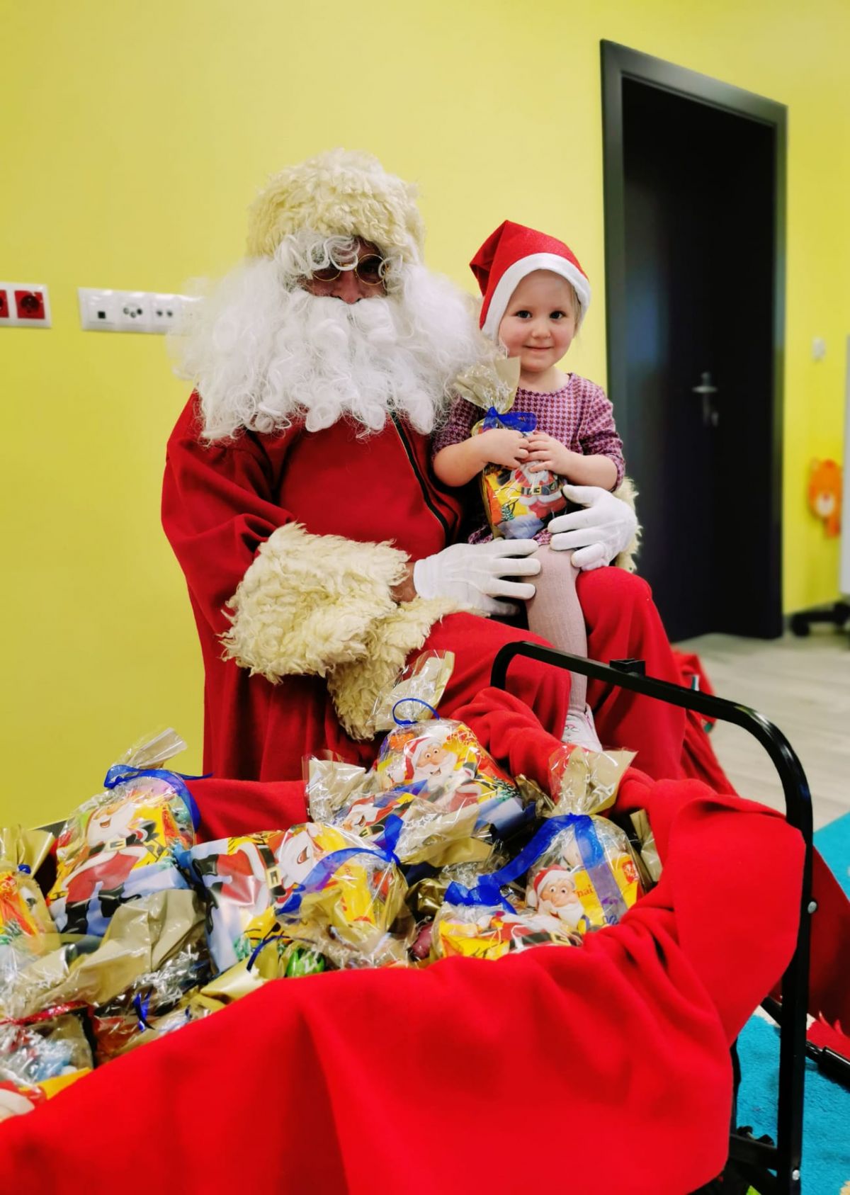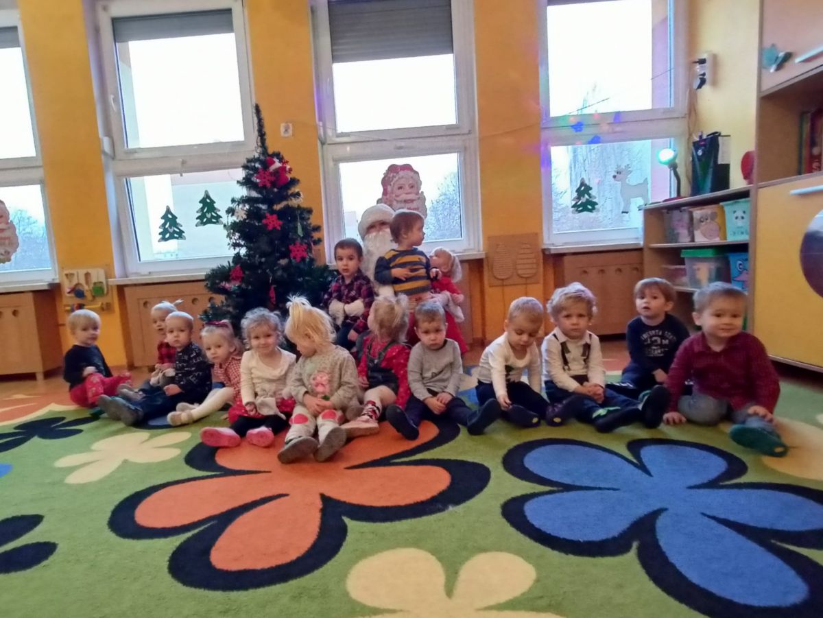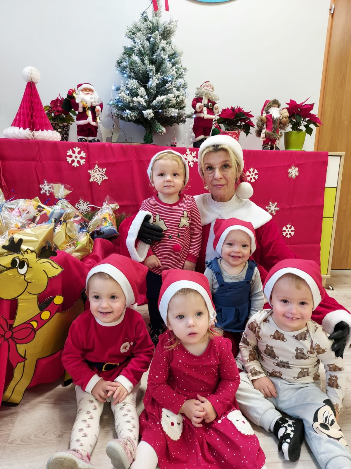 Mikołaj w Żłobku to szczególnie ważne wydarzenie dla wszystkich dzieci. Już pod koniec listopada Maluszki uczyły się piosenek i tańców by powitać upragnionego gościa. Od samego rana wyczekiwały Świętego nasłuchując radosnego okrzyku „hoł, hoł, hoł”. Aż w końcu rozległo się dźwięk dzwoneczka i w progu stanął ON…Święty Mikołaj. Miał czerwony strój, długą białą brodę, na nosie okulary i worek z prezentami.